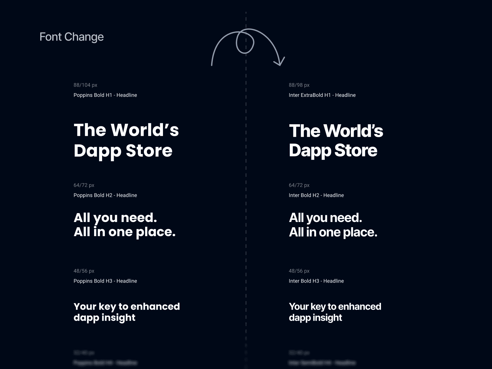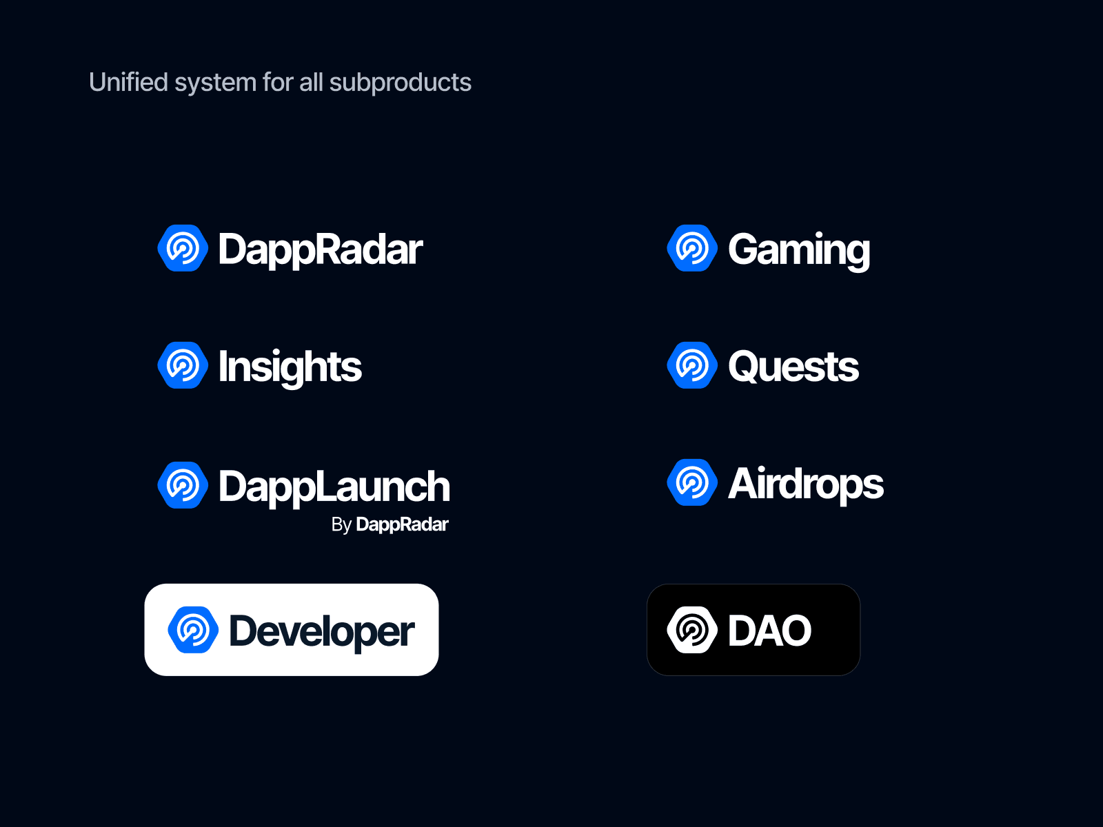 I led the 2025 refresh of DappRadar’s visual identity, modernizing the logo, refining the icon, and improving legibility across all surfaces. As part of the update, we switched the primary typeface from Poppins to Inter, strengthening readability in data-heavy UI, reflecting the changes in the Design System.