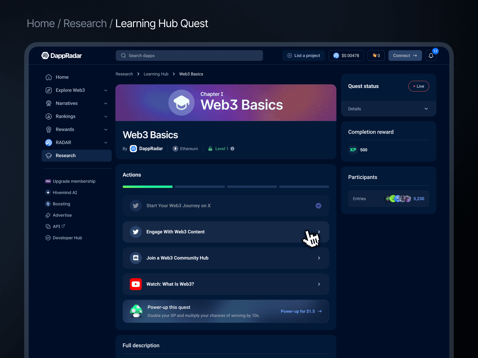 Notably, Learning Paths were implemented using the platform’s existing gamification engine, allowing users to progress through Web3 concepts with XP, achievements, and chapter-based learning.